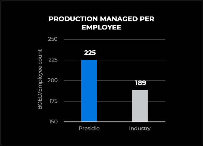 Presidio acquires and optimizes oil and gas assets focused on operations optimization and technology. Our team is based in Fort Worth and our average age is under 40, with expertise in finance, energy, engineering and software development. Intense focus on measurement gives everyone—from the pumper to the CEO—the information and responsibility to drive ownership and maximize profitability.